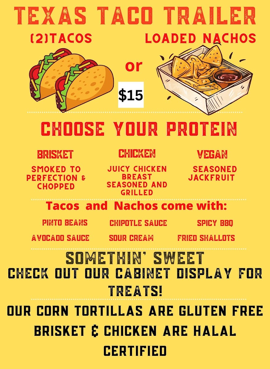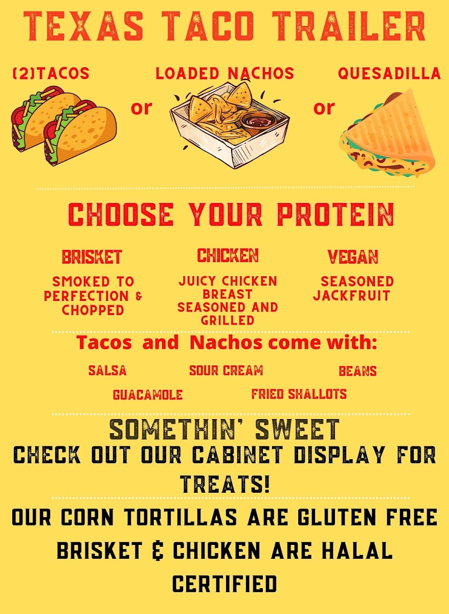 Each dish is prepared with attention to detail, ensuring flavor and quality are top-notch. Patrons have noted the generous portion sizes at reasonable prices, making each visit worthwhile. The homemade desserts, like the legendary brookie and strawberry crumble cookie, complement the savory tacos perfectly. With outstanding service and vibrant energy, Texas Taco Trailer is a must-visit for both taco aficionados and casual diners alike!